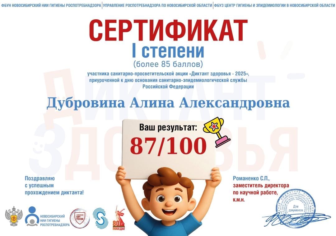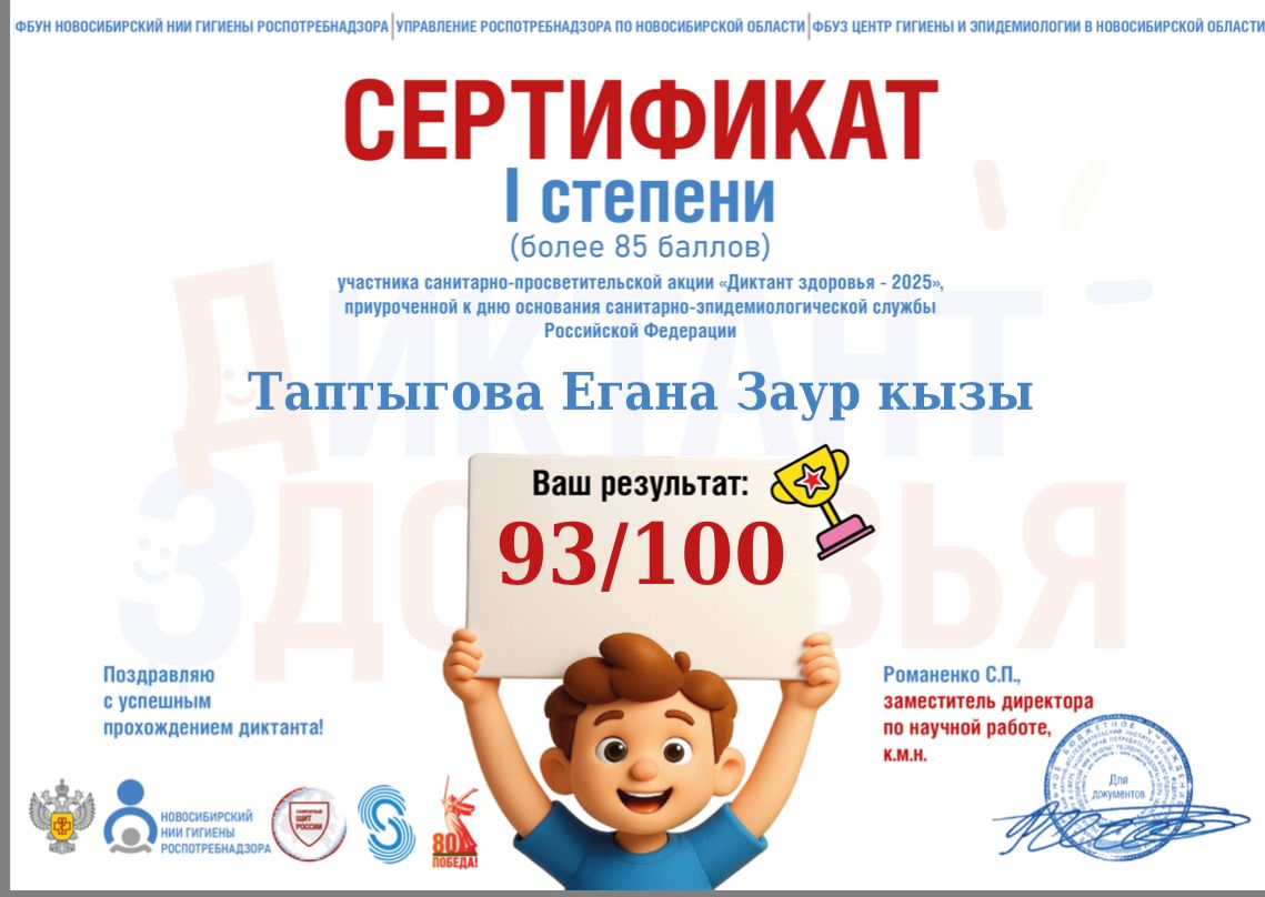 По итогам «Диктанта здоровья-2025»  все студенты и преподаватели колледжа, прошедшие онлайн-тестирование получили  электронный сертификат участника акции.