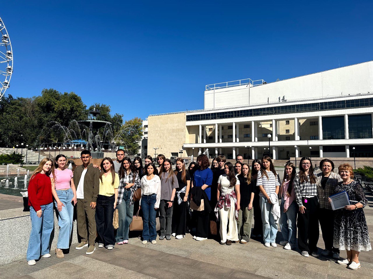 Ребята узнали, что драматический театр имени Горького получил очертания трактора не случайно. Его строительство началось в 1930 году, а годом ранее на заводе «Ростсельмаш» сошёл с конвейера первый трактор «Коммунар», по образцу которого и создали проект театра.