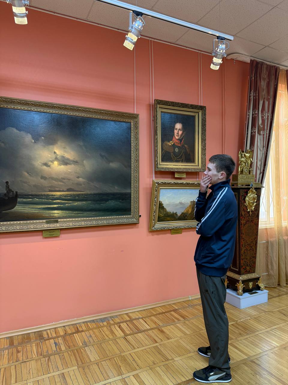 С большим интересом студенты ознакомились с живописными произведениями, представленными в залах музея, обсудили фильм Владимира Александровича Гусева «Коллекция Александра III» из медиатеки Русского музея, узнали о взаимоотношениях императора с художниками и о формировании коллекции, которая легла в основу Русского музея.