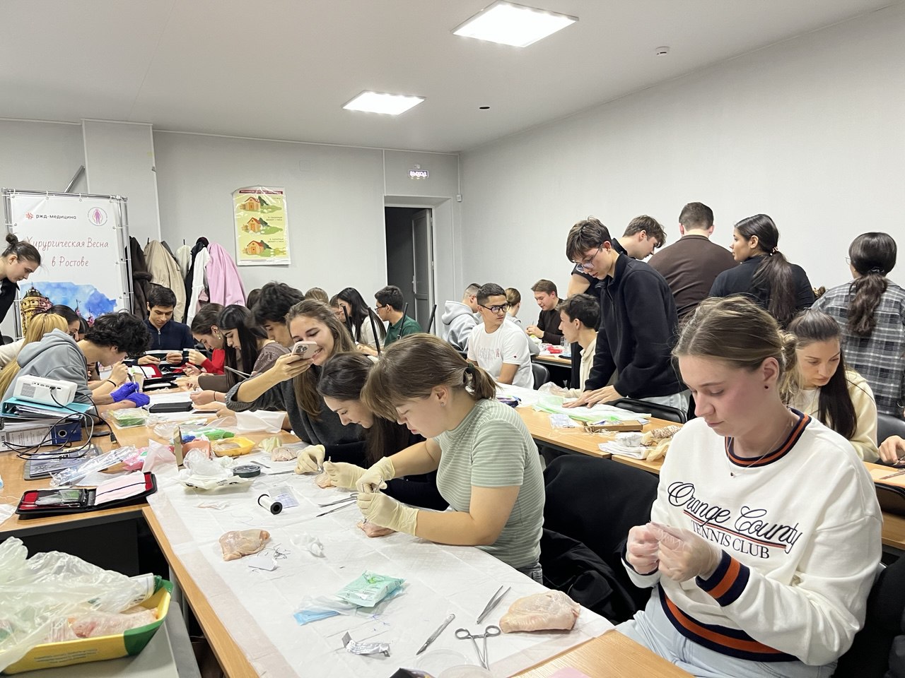 Студенты младших курсов Ростовского государственного медицинского университета Минздрава России получили базовые хирургические навыки на практическом заседании Ростовской Школы Хирургии, основанной на базе кафедры хирургических болезней №3 вуза.