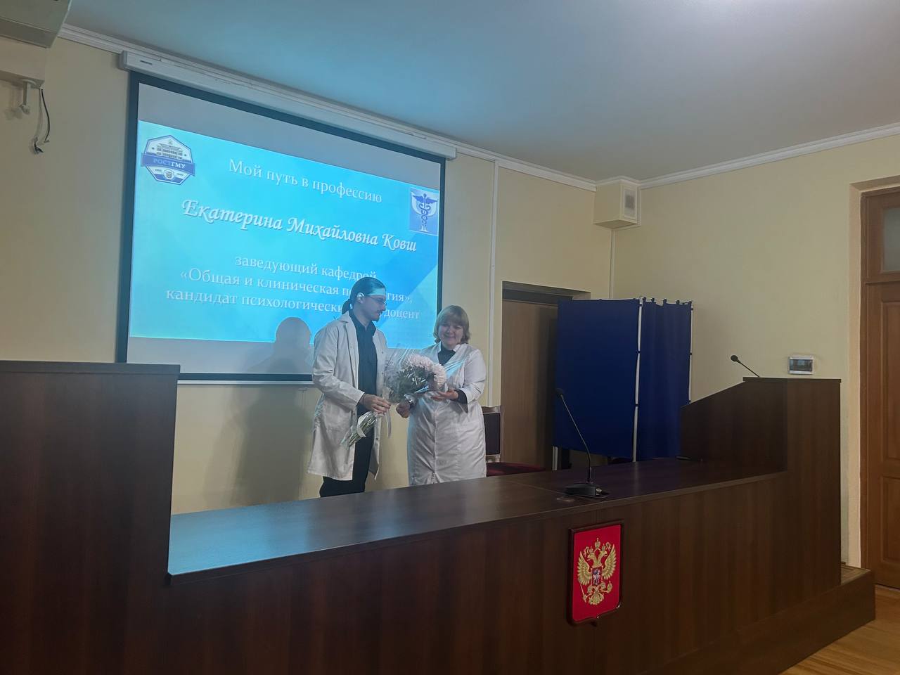 В рамках проекта «Мой путь в профессию» в Ростовском государственном медицинском университете Минздрава России состоялась тематическая встреча и.о. заведующей кафедрой общей и клинической психологии, кандидата психологических наук, доцента Екатерины Михайловны Ковш с обучающимися факультета клинической психологии и заместителем начальника отдела по воспитательной работе, социальным вопросам и работе с молодежью Татьяной Васильевной Лобода.