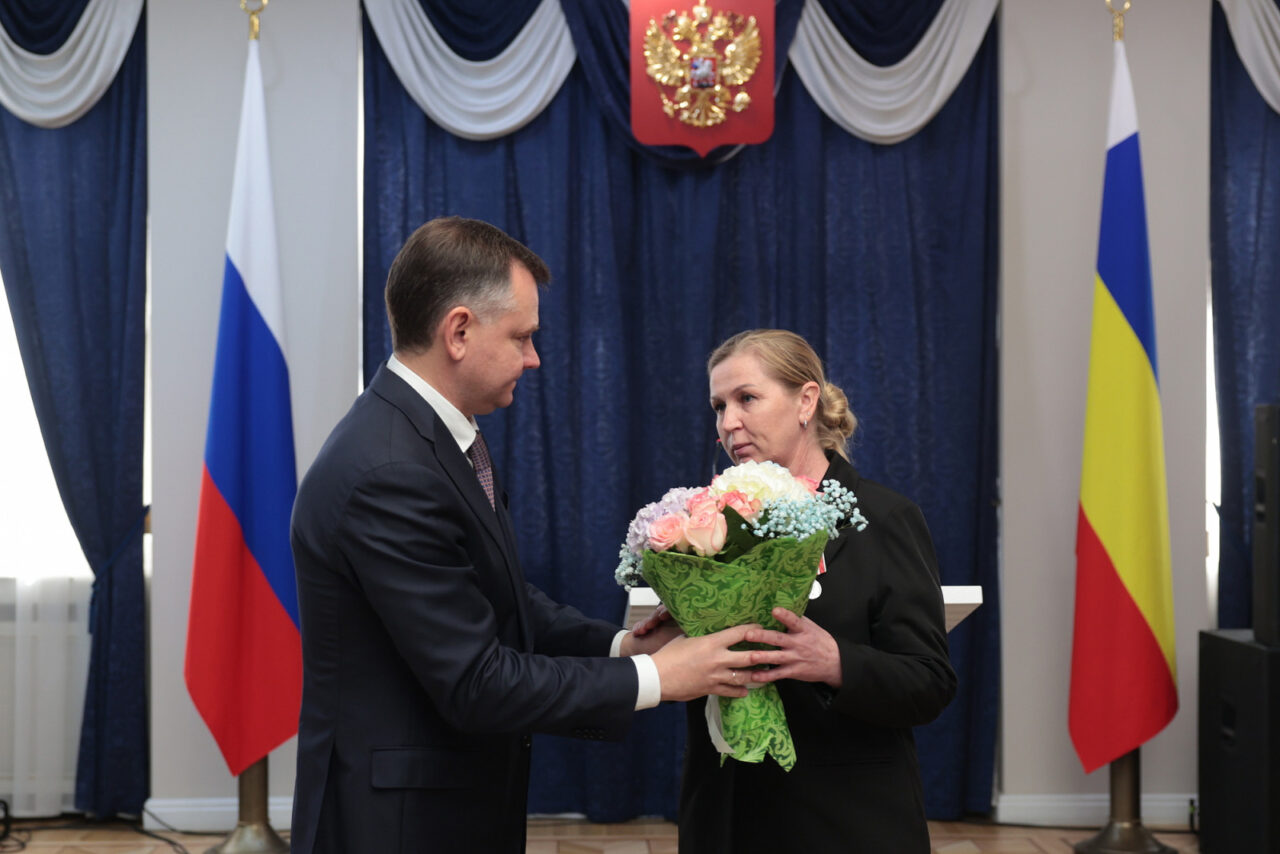 На торжественной церемонии был отмечен личный вклад более 40 работников промышленности, сельского хозяйства, культуры в развитие Донского края.