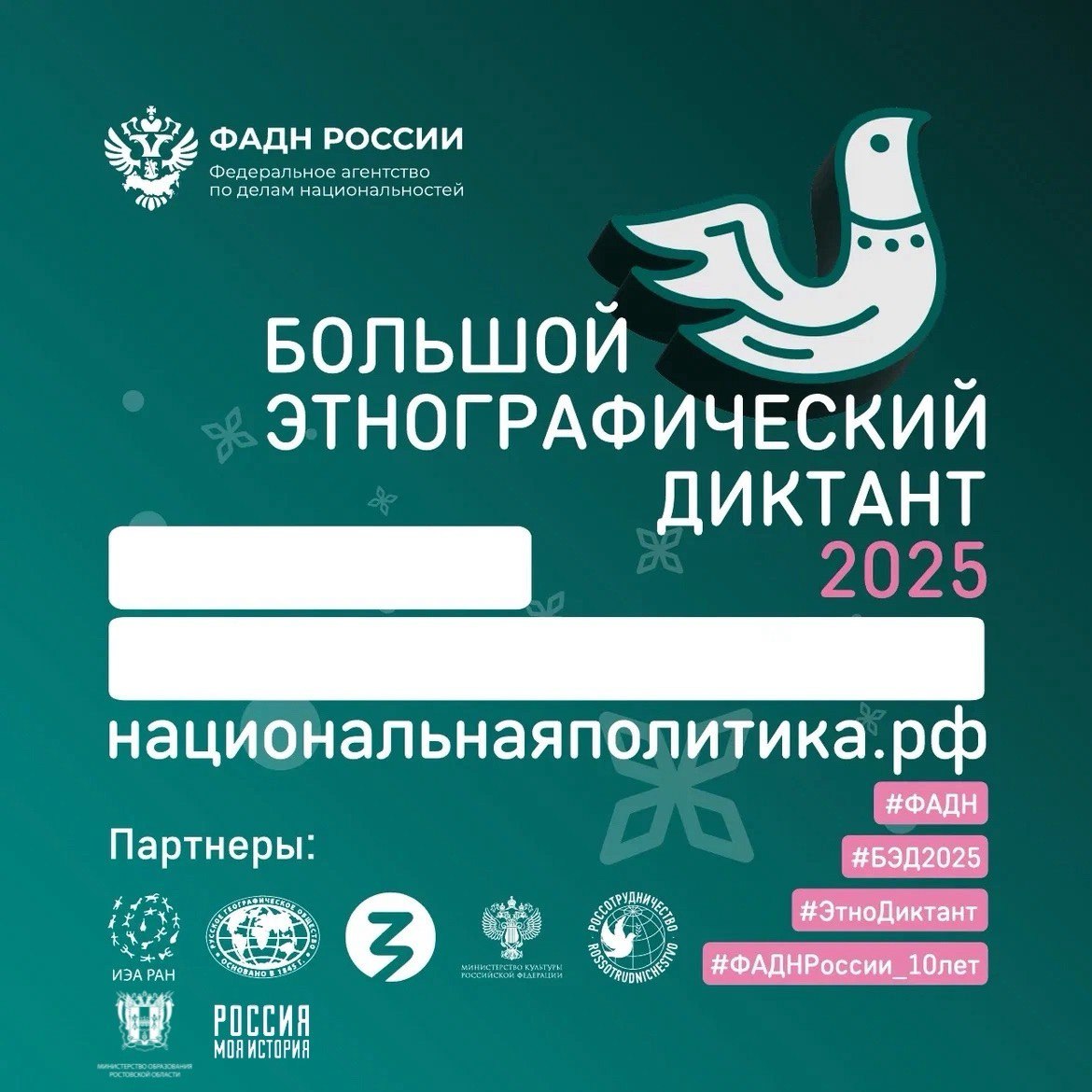 Подробнее о Диктанте читайте по ссылке: X Юбилейный Большой этнографический диктант | 1 — 8 ноября 2025 года