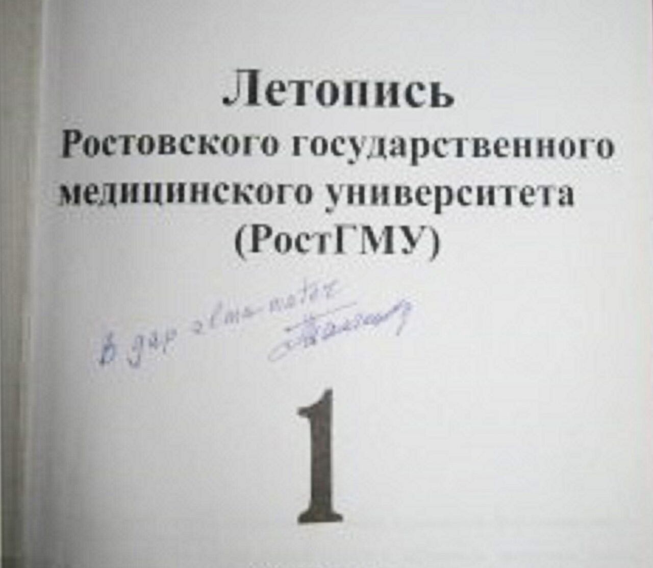 В его «Летописи Ростовского государственного медицинского университета (РостГМУ)» отражены основные этапы истории РостГМУ.