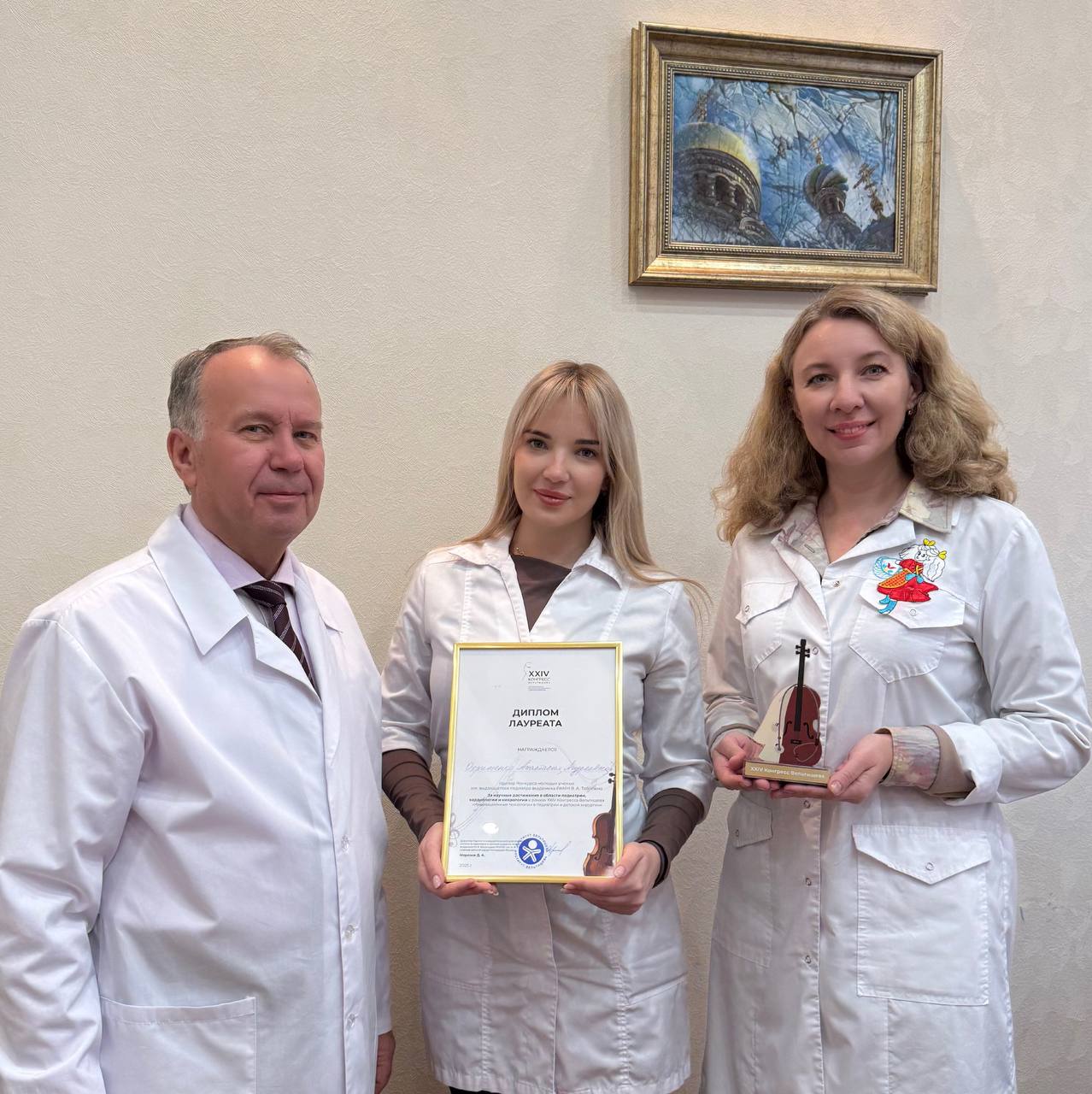 Диплом лауреата конкурса молодых учёных имени выдающегося педиатра, академика РАМН В.Н. Таболина ординатору Анастасии Охрименко вручал директор НИКИ им. академика Ю. Е. Вельтищева, д.м.н., профессор Дмитрий Анатольевич Морозов. Он высоко оценил научный уровень исследования представителя РостГМУ.