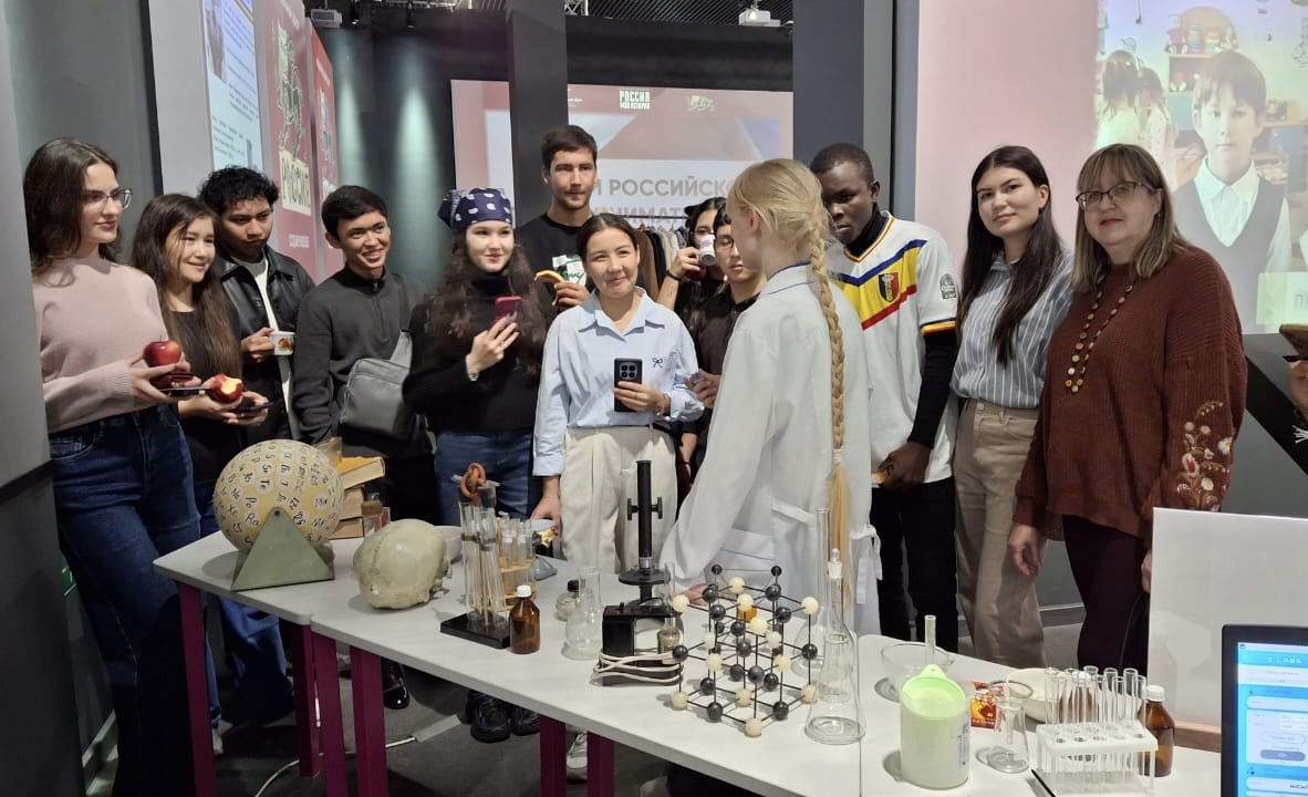 Иностранные обучающиеся не только познакомились с экспозицией выставки, но и поучаствовали в интерактивных занятиях. Ребята изобразили российский флаг, нашли свои страны на глобусе, пообщались с роботом-библиотекарем, провели химические опыты, попробовали блюда русской кухни, посмотрели концертную программу, написали послания на русском и родных языках.