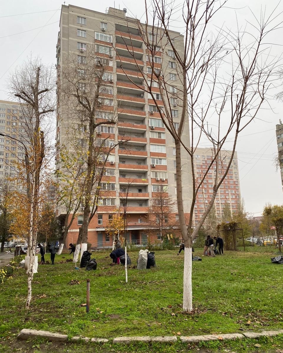 Территория вокруг общежития, находящегося в Западном микрорайоне Ростова-на-Дону, заметно преобразилась: был собран мусор, опавшая листва, посажены деревья и цветы.