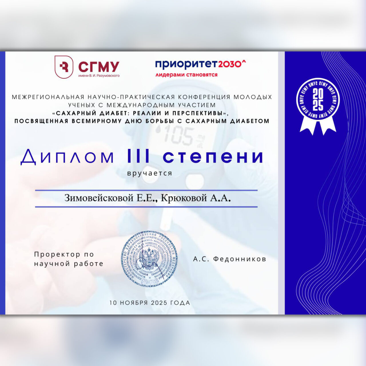 Ординаторы РостГМУ отмечены дипломом на межрегиональной конференции по сахарному диабету