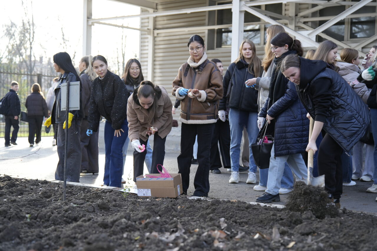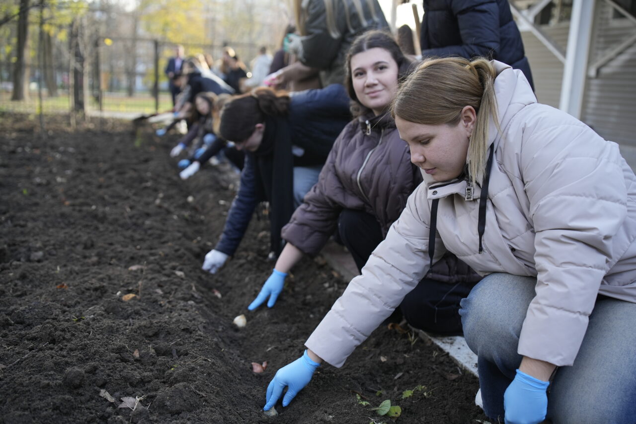Участники высадили луковицы различных видов тюльпанов, которые станут символом связи поколений.