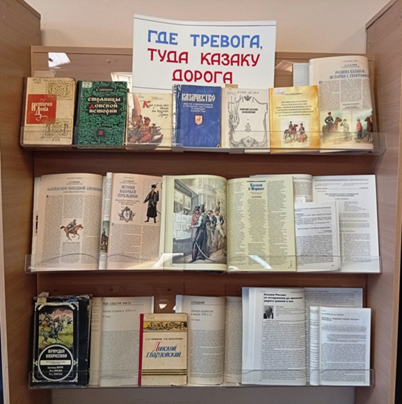 К Всемирному дню казачества в библиотеке РостГМУ организовано две выставки. Экспозиция «Судьба казачества на страницах книг» представляет литературу, посвященную истории казачества, его культуре, традициям, а также художественные произведения, главными героями которых стали казаки. На выставке «Где тревога, туда казаку и дорога» представлены материалы по истории казачьего сословия, книги и журнальные публикации о ратных подвигах отважных казаков в Отечественной войне 1812 года, Первой мировой и Великой Отечественной войнах.