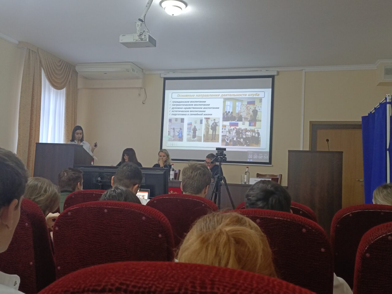 В конференции  приняла участие студентка 4 курса специальности Лечебное дело колледжа РостГМУ Согомонян Анна, которая представила  доклад «Опыт формирования  гражданской идентичности в колледже РостГМУ  через работу литературно-музыкального клуба «Души прекрасные порывы». Анна   представила презентацию, в которой рассказала о рисках и вызовах,  возникающих у современной молодёжи, основных направлениях и формах работы клуба, представила результаты и перспективы работы литературно-музыкального клуба колледжа.