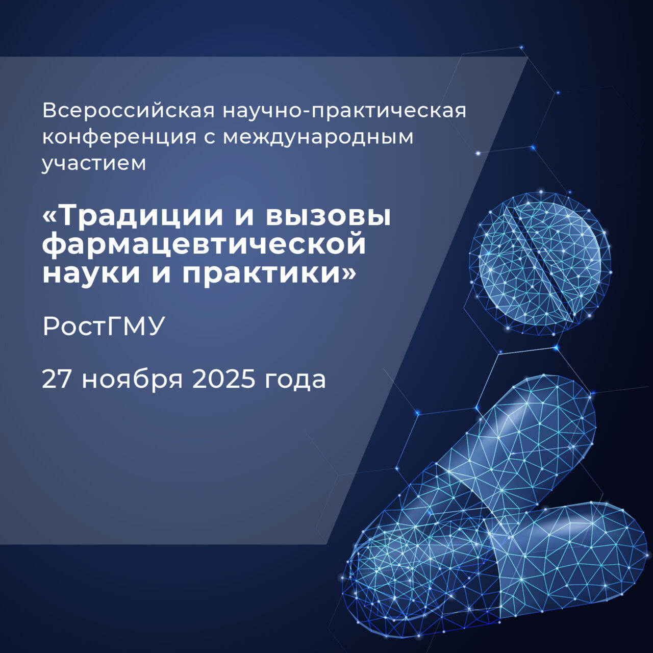 27 ноября 2025 года приглашаем Вас принять участие во Всероссийской научно-практической конференции с международным участием, посвященной 20-летию фармацевтического факультета ФГБОУ ВО «Ростовский государственный медицинский университет» Минздрава России «Традиции и вызовы фармацевтической науки и практики».