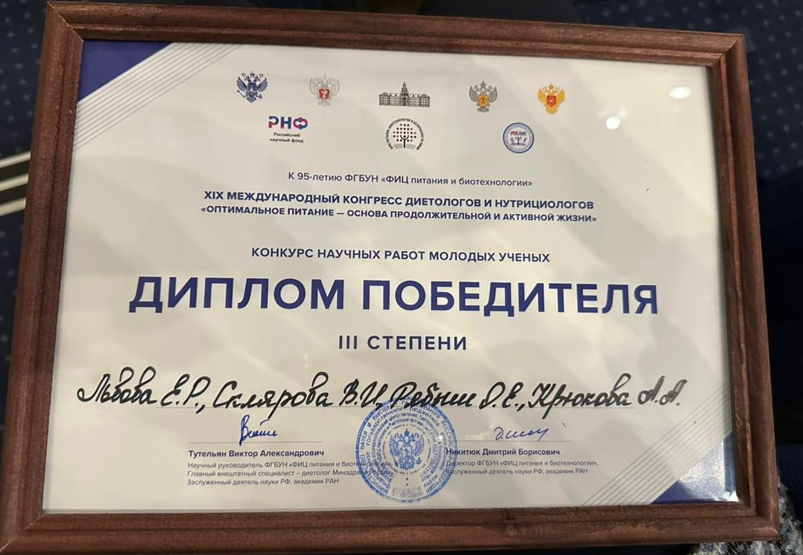 В Москве на XlX Международном конгрессе диетологов и нутрициологов активисты молодежного научного кружка кафедры здорового образа жизни и диетологии стали призёрами конкурса научных работ молодых учёных.