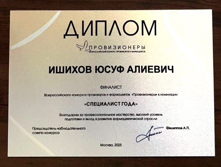 Ассистент кафедры химии Ростовского государственного медицинского университета Минздрава России Юсуф Алиевич Ишихов стал финалистом Всероссийского конкурса «Провизионеры–2025».