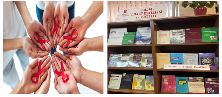 На выставке библиотеки РостГМУ представлены книги, рассказывающие об истории возникновения СПИДа, о причинах заболевания, составе и строении вируса, путях его распространения, диагностике, средствах лечения.