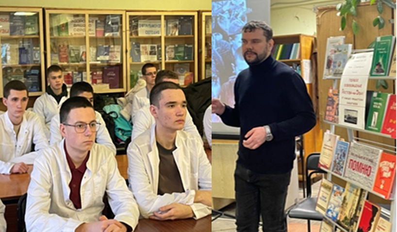 Сергей Сергеевич Козлов, ассистент кафедры истории, рассказал  студентам о начале Великой Отечественной войны, о первой оккупации Ростова-на-Дону, о зверствах фашистов в городе.
