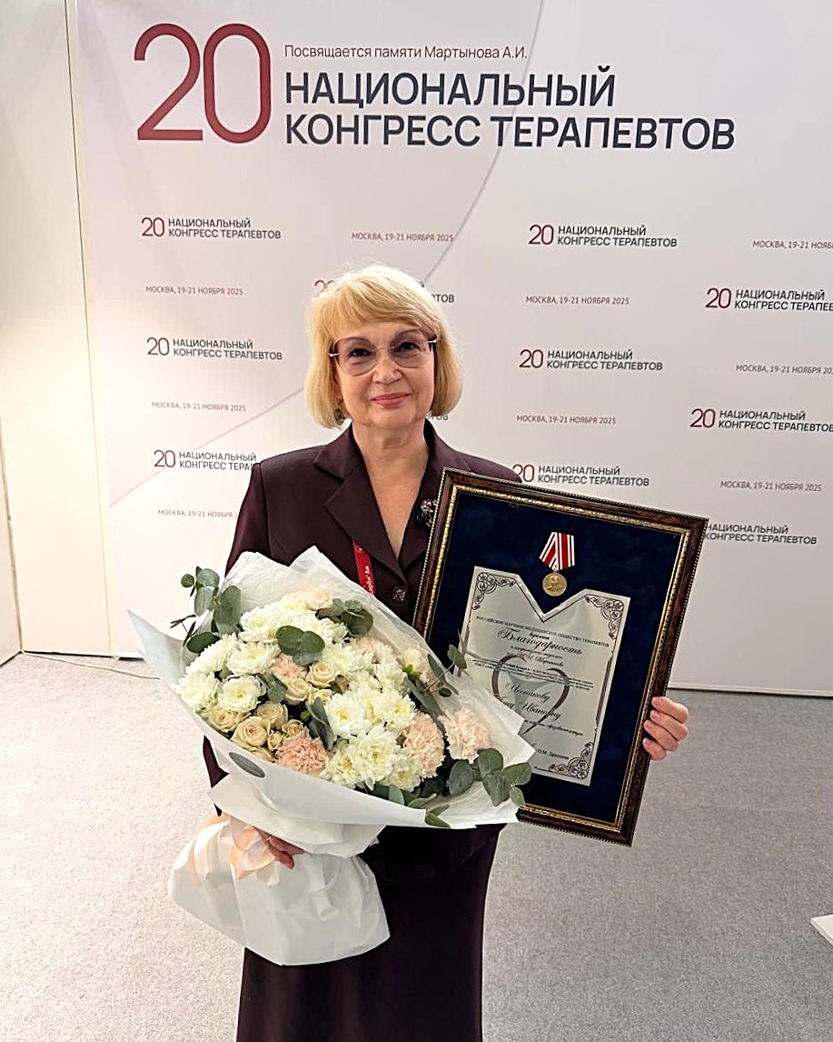 На торжественном открытии Конгресса Анне Ивановне Чесниковой была вручена престижная награда — медаль имени А.И. Мартынова за многолетний вклад в развитие отечественной терапии, медицинского образования и науки.
