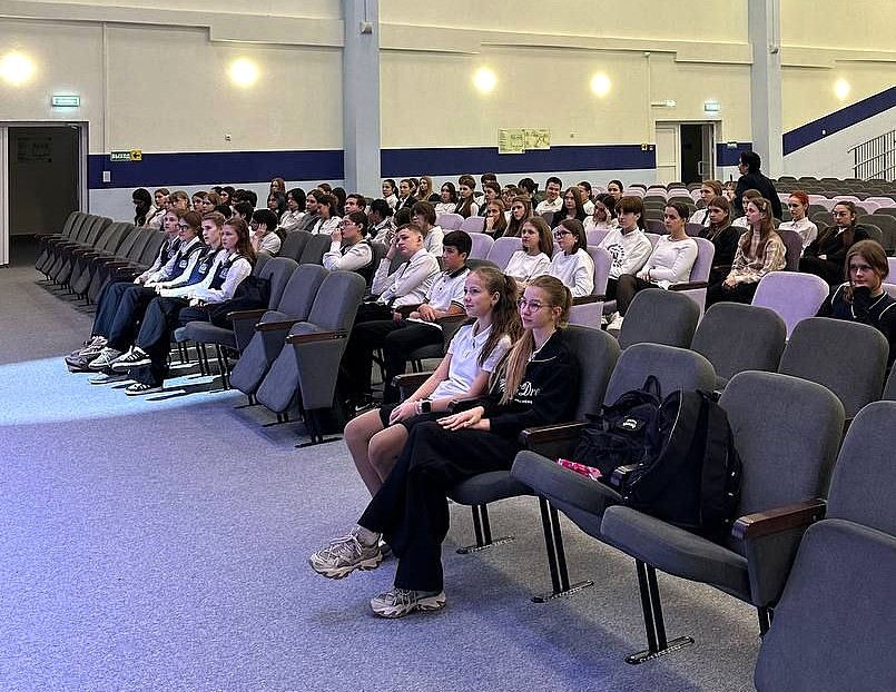 В актовом зале школы собрались учащиеся естественно-научного профиля.