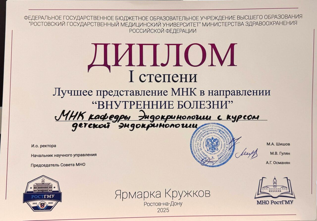 В 2025 году на всероссийском уровне получил признание МНК эндокринологии РостГМУ